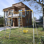 Дачный комплекс «Весёлая лужайка 2» с качелями-сеткой R.103.25.04 — идеальное решение для активного отдыха на свежем воздухе. Этот комплекс изготовлен из высококачественных материалов и соответствует всем стандартам безопасности.