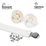 Держатель подходит для всех видов пустышек – как с ручкой (например, BIBS Colour/Boheme/DeLux), так и без ручки (BIBS Couture/Supreme/Infinity). В комплекте c держателем есть силиконовое колечко, которое используется для крепления пустышки без ручки. Также держатели BUBA KIDS подходят для всех прорезывателей BIBS Baby Bitie, Mushie и прорезывателей Oli&Carol с отверстием для крепления.