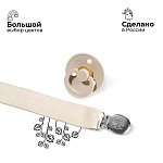 Держатель подходит для всех видов пустышек – как с ручкой (например, BIBS Colour/Boheme/DeLux), так и без ручки (BIBS Couture/Supreme/Infinity). В комплекте c держателем есть силиконовое колечко, которое используется для крепления пустышки без ручки. Также держатели BUBA KIDS подходят для всех прорезывателей BIBS Baby Bitie, Mushie и прорезывателей Oli&Carol с отверстием для крепления.