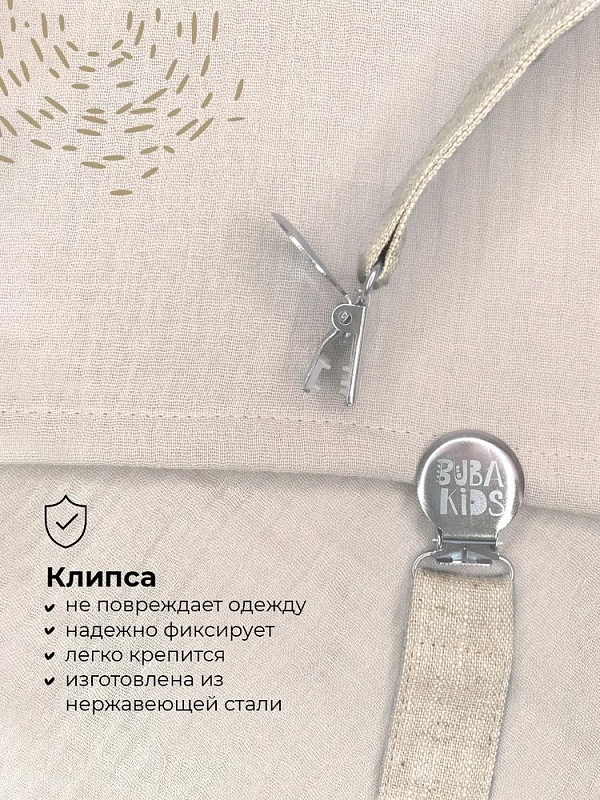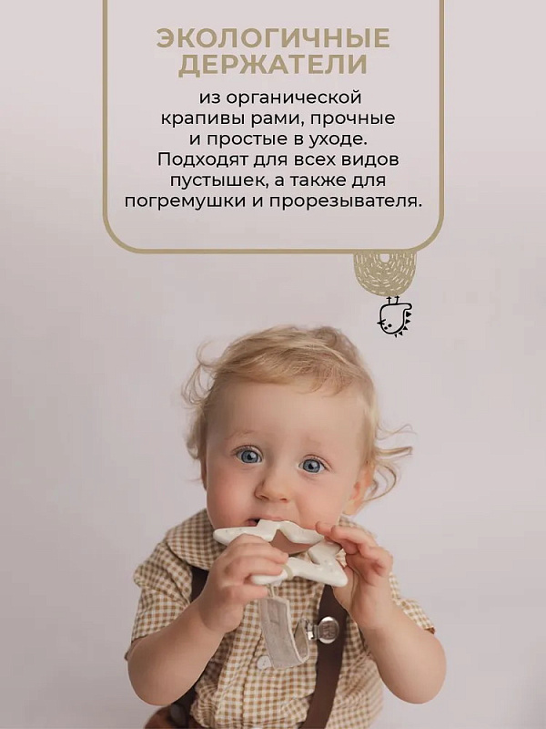 Держатель подходит для всех видов пустышек – как с ручкой (например, BIBS Colour/Boheme/DeLux), так и без ручки (BIBS Couture/Supreme/Infinity). В комплекте c держателем есть силиконовое колечко, которое используется для крепления пустышки без ручки. Также держатели BUBA KIDS подходят для всех прорезывателей BIBS Baby Bitie, Mushie и прорезывателей Oli&Carol с отверстием для крепления.