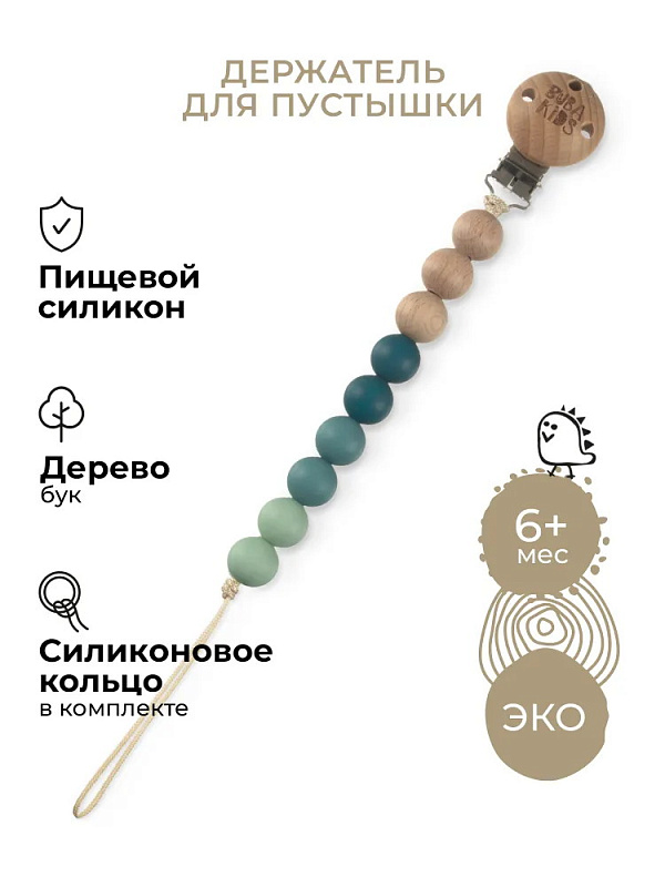 Бусины выполнены из безопасных материалов: 100% пищевой силикон и натуральное дерево (бук).