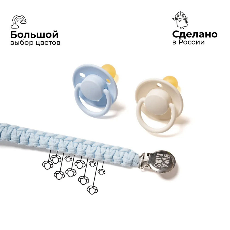 Держатели BUBA KIDS подходят абсолютно для всех видов пустышек – как с ручкой (BIBS Colour/Boheme/De Lux), так и без ручки (BIBS Couture/Supreme/Infinity). В комплекте c держателем есть силиконовое колечко, которое используется для крепления пустышки без ручки. Также держатели BUBA KIDS подходят для всех прорезывателей BIBS Baby Bitie, Mushie и прорезывателей Oli&Carol с отверстием для крепления.