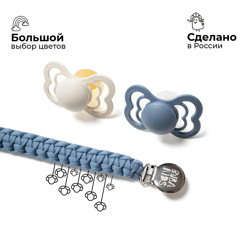 Держатели BUBA KIDS подходят абсолютно для всех видов пустышек – как с ручкой (BIBS Colour/Boheme/De Lux), так и без ручки (BIBS Couture/Supreme/Infinity). В комплекте c держателем есть силиконовое колечко, которое используется для крепления пустышки без ручки. Также держатели BUBA KIDS подходят для всех прорезывателей BIBS Baby Bitie, Mushie и прорезывателей Oli&Carol с отверстием для крепления.