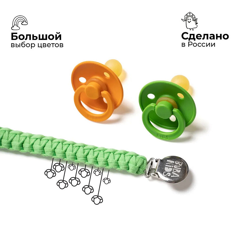 Держатели BUBA KIDS подходят абсолютно для всех видов пустышек – как с ручкой (BIBS Colour/Boheme/De Lux), так и без ручки (BIBS Couture/Supreme/Infinity). В комплекте c держателем есть силиконовое колечко, которое используется для крепления пустышки без ручки. Также держатели BUBA KIDS подходят для всех прорезывателей BIBS Baby Bitie, Mushie и прорезывателей Oli&Carol с отверстием для крепления.