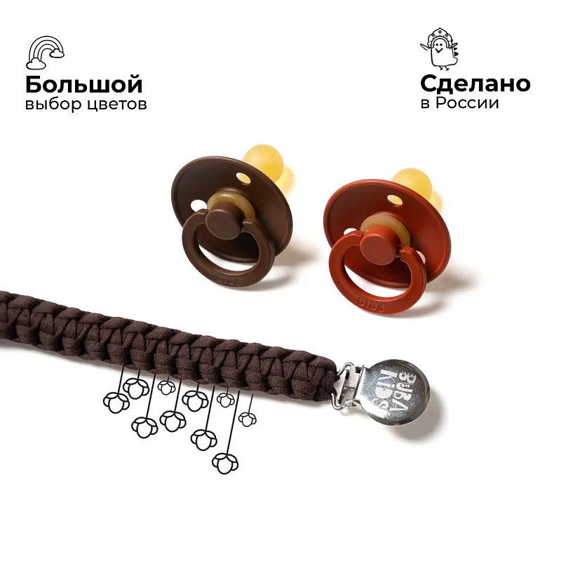 Держатель очень прост в использовании: прикрепите клипсу к одежде малыша, и пустышка больше не потеряется и не упадет на пол. Палитра цветов почти безгранична.