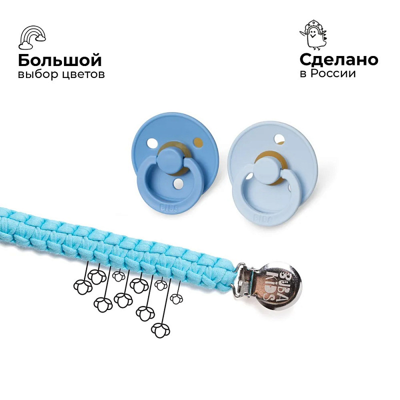 Держатель очень прост в использовании: прикрепите клипсу к одежде малыша, и пустышка больше не потеряется и не упадет на пол. Палитра цветов почти безгранична.