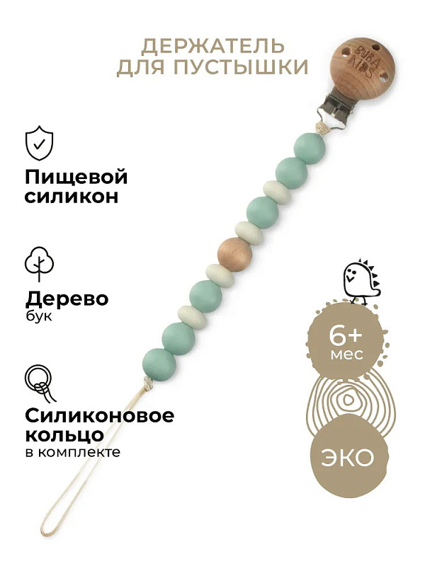 Бусины выполнены из безопасных материалов: 100% пищевой силикон и натуральное дерево (бук).