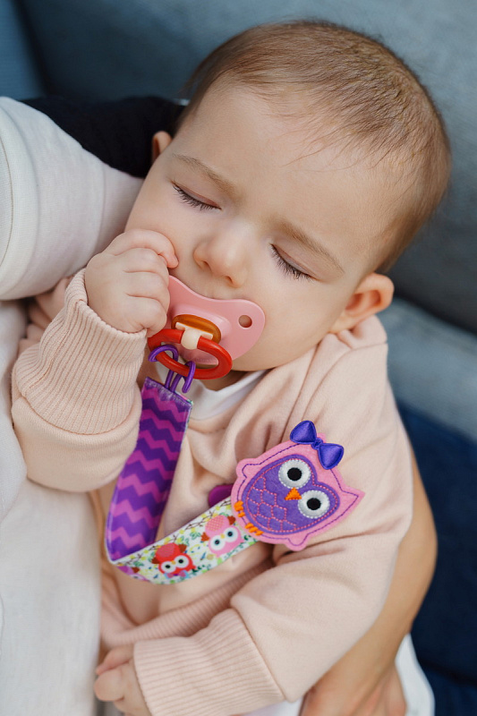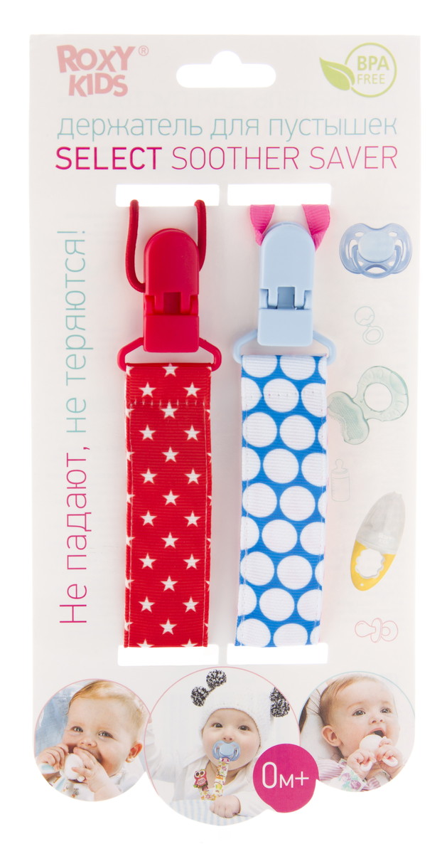 Держатель для пустышки от ROXY-KIDS избавит ребенка от риска потерять или испачкать пустышку, соску, ниблер или грызунок. Один конец держателя прикрепляется к тому предмету, который вы хотите сохранить, а второй при помощи специальной клипсы пристегивается к одежде ребенка. Держатели выполнены из двух слоев полиэстера, прочно сшитых вместе, поэтому они не износятся и не порвутся. Яркие цвета ткани привлекут внимание ребенка и будут отлично смотреться на фоне детской одежды. С держателями пустышка останется чистой, будет всегда поблизости к малышу и у вас на виду. В ассортименте ROXY-KIDS держатели представлены в нескольких цветах и дизайнах.
