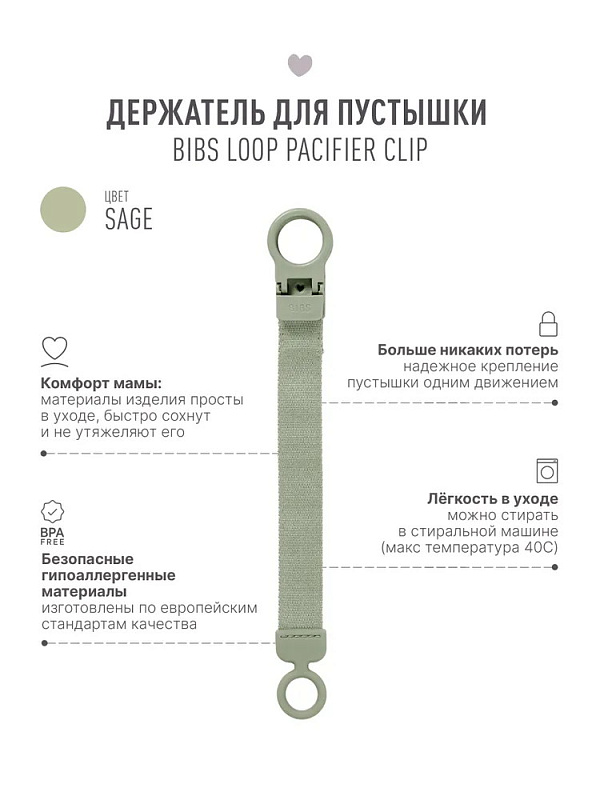 Держатель для пустышки Bibs Clip Loop 9501250 Sage