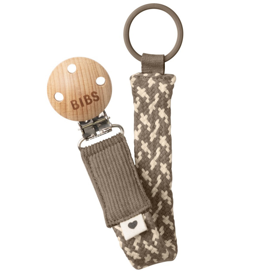 Держатель BIBS выполнен из органического хлопка, металлическая клипса без никеля дополнена деревянным элементом. Длина соответствует стандартам безопасности.