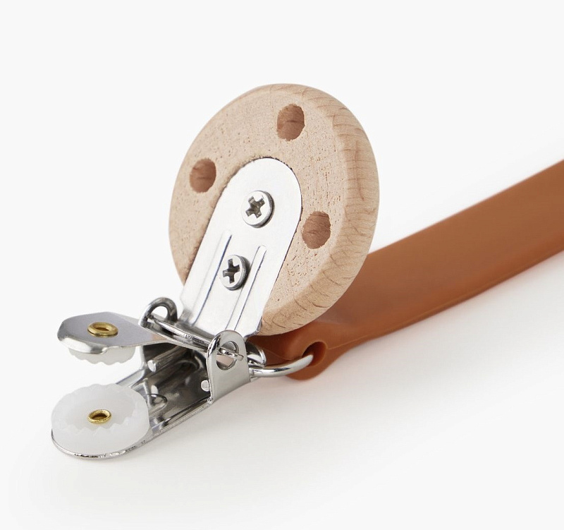 Стильный держатель на страже гигиены и здоровья малыша. Теперь вы можете быть уверены, что пустышка или прорезыватель не потеряются и останутся чистыми. Ремешок из мягкого силикона безопасно и приятно грызть. Металлическая клипса с деревянной защитной насадкой надёжно крепится и красиво выглядит. Незаменимая вещь для ежедневных прогулок и длительных поездок.