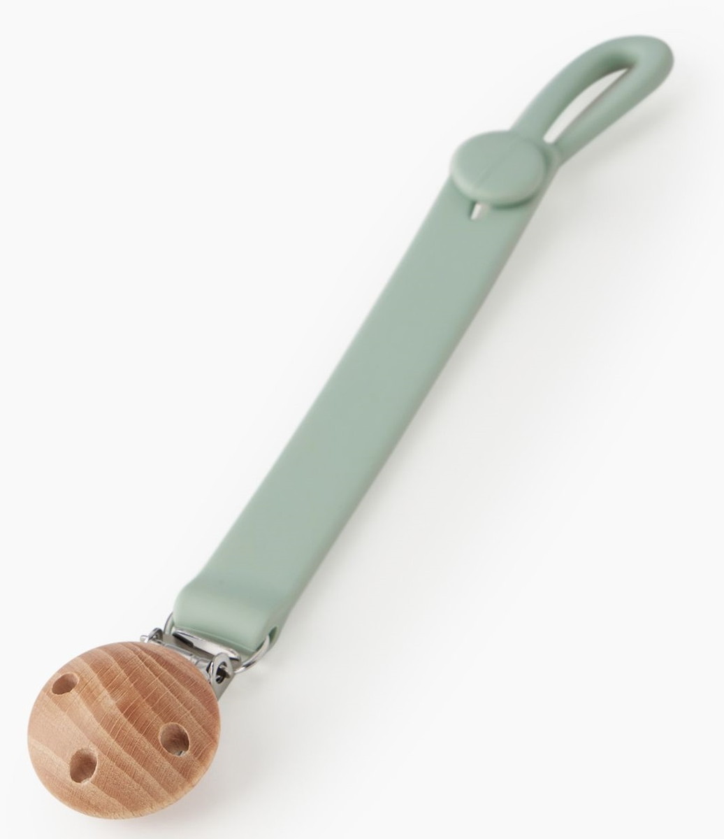 Стильный держатель на страже гигиены и здоровья малыша. Теперь вы можете быть уверены, что пустышка или прорезыватель не потеряются и останутся чистыми. Ремешок из мягкого силикона безопасно и приятно грызть. Металлическая клипса с деревянной защитной насадкой надёжно крепится и красиво выглядит. Незаменимая вещь для ежедневных прогулок и длительных поездок.
