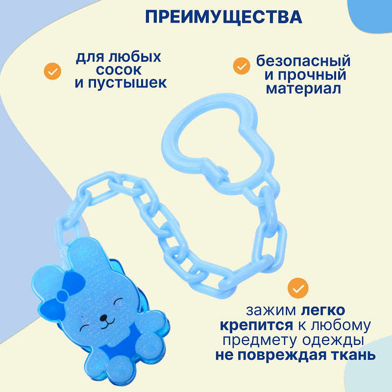 Держатель - клипса "Кролик" от Uviton поможет любимой соске-пустышке малыша всегда оставаться на месте.