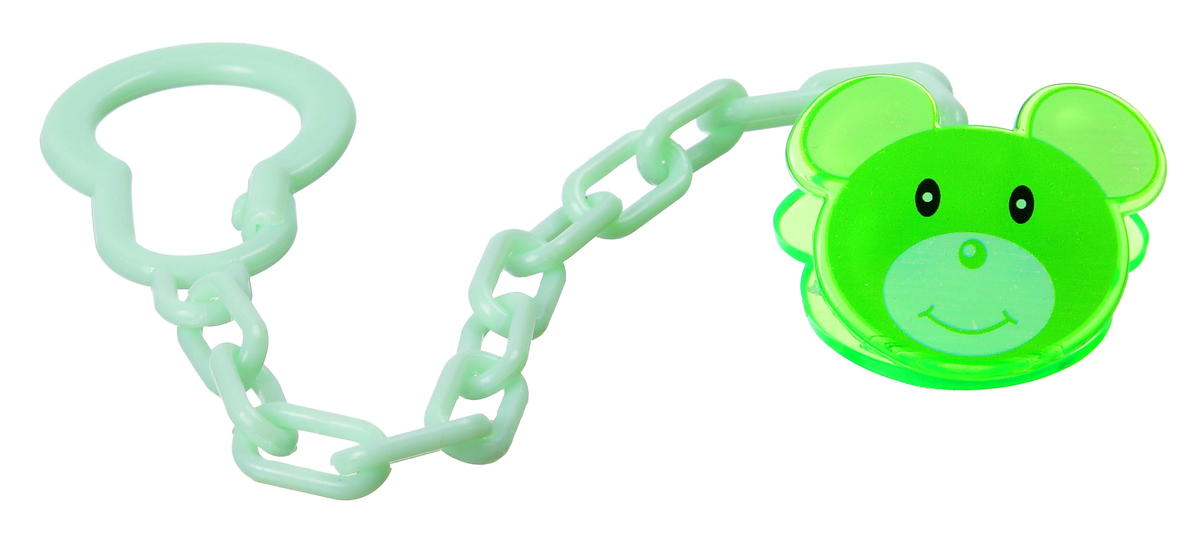 Изделие представляет собой цепочку, выполненную из округлых звеньев, и имеющую специальную клипсу для крепления к одежке владельца, украшенную изображением забавного мышонка. Ко второму ее концу легко и просто крепится кольцо пустышки.