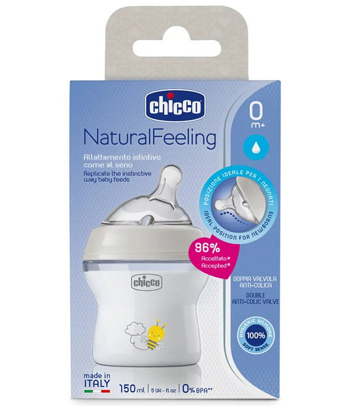 Детская бутылочка Chicco Natural Feeling пласт. 0 м+ 150 мл нейтральный