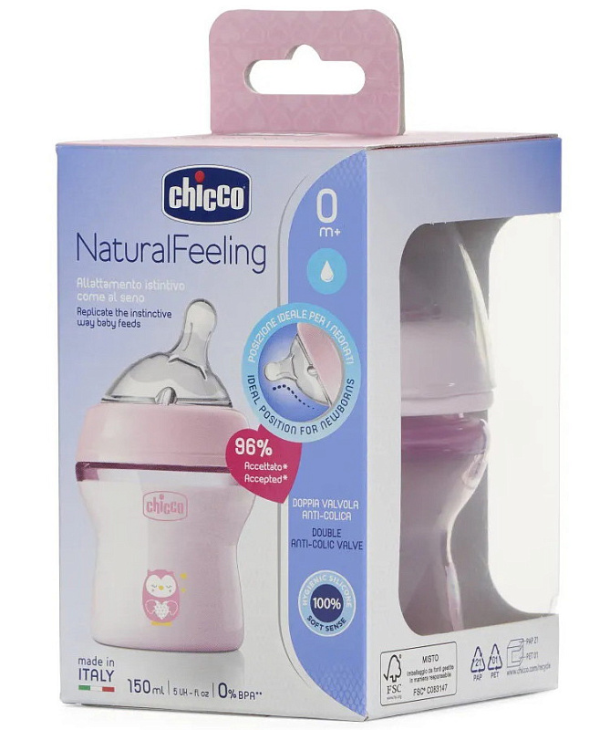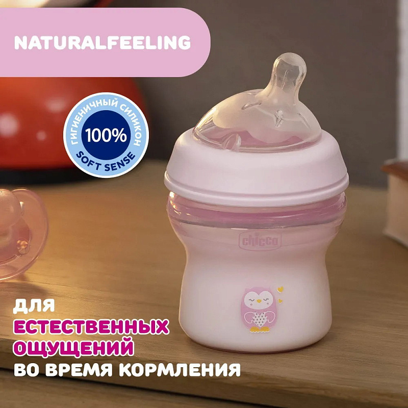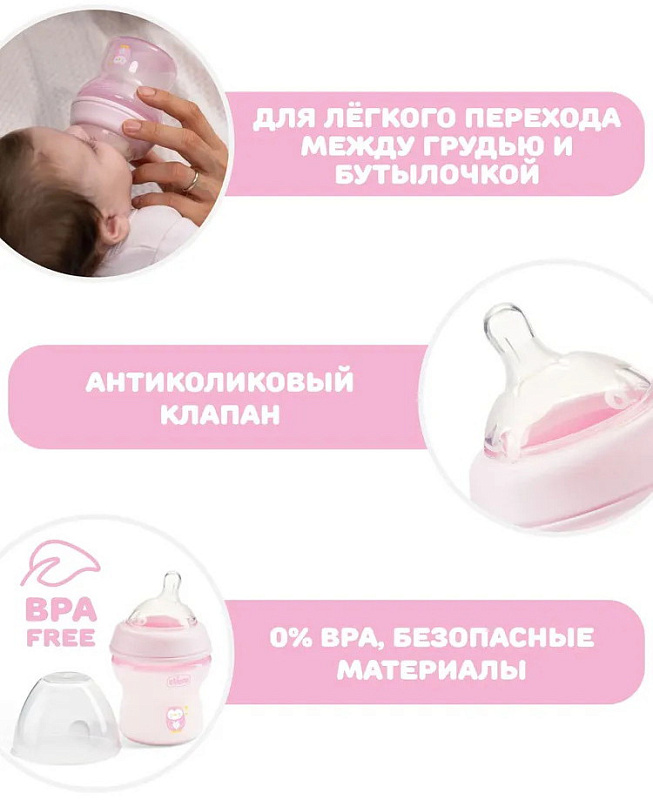 Детская бутылочка Chicco Natural Feeling пласт. 0 м+ 150 мл розовый