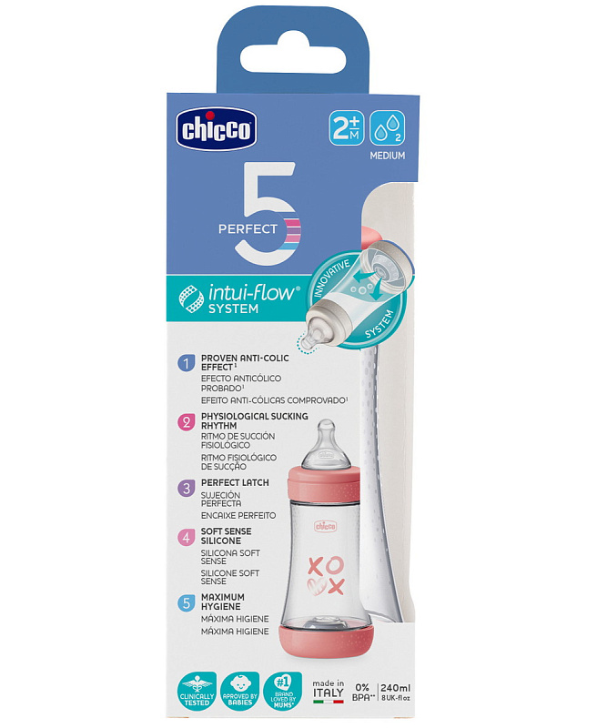 Детская бутылочка Chicco Perfect 5, норм.поток,с/с, 240 мл Girl