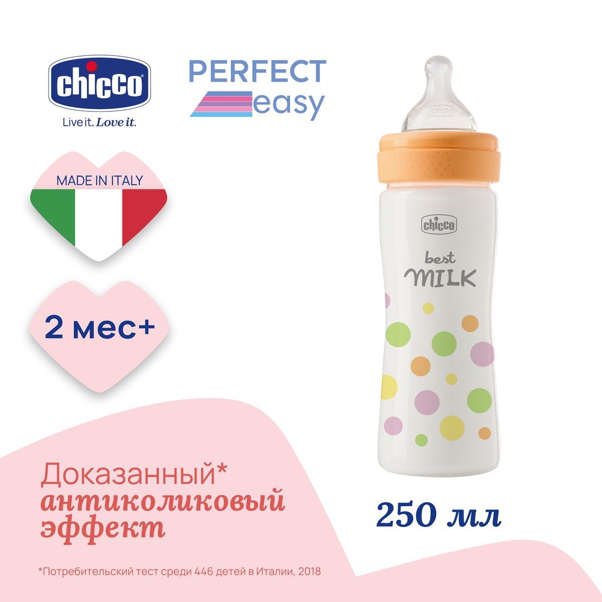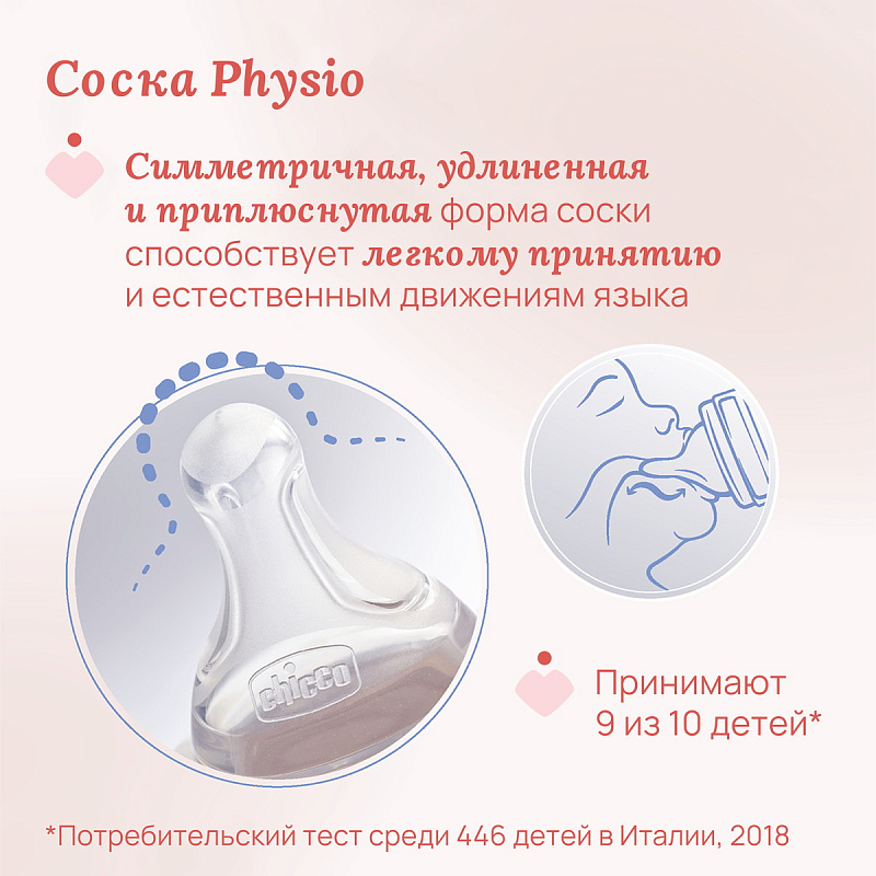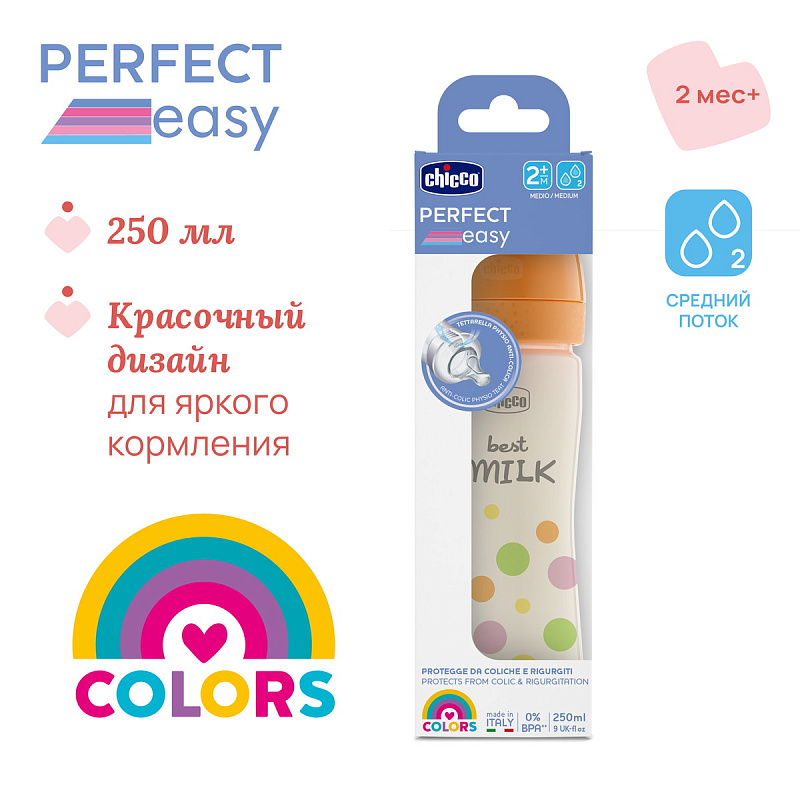 Детская бутылочка Chicco Perfect Easy пласт. норм. поток, 2 м+ 250 мл Girl