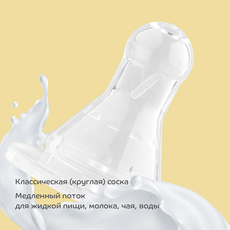 Комплектность и материалы: бутылочка - стекло, полипропилен (PP), соска молочная - силикон.