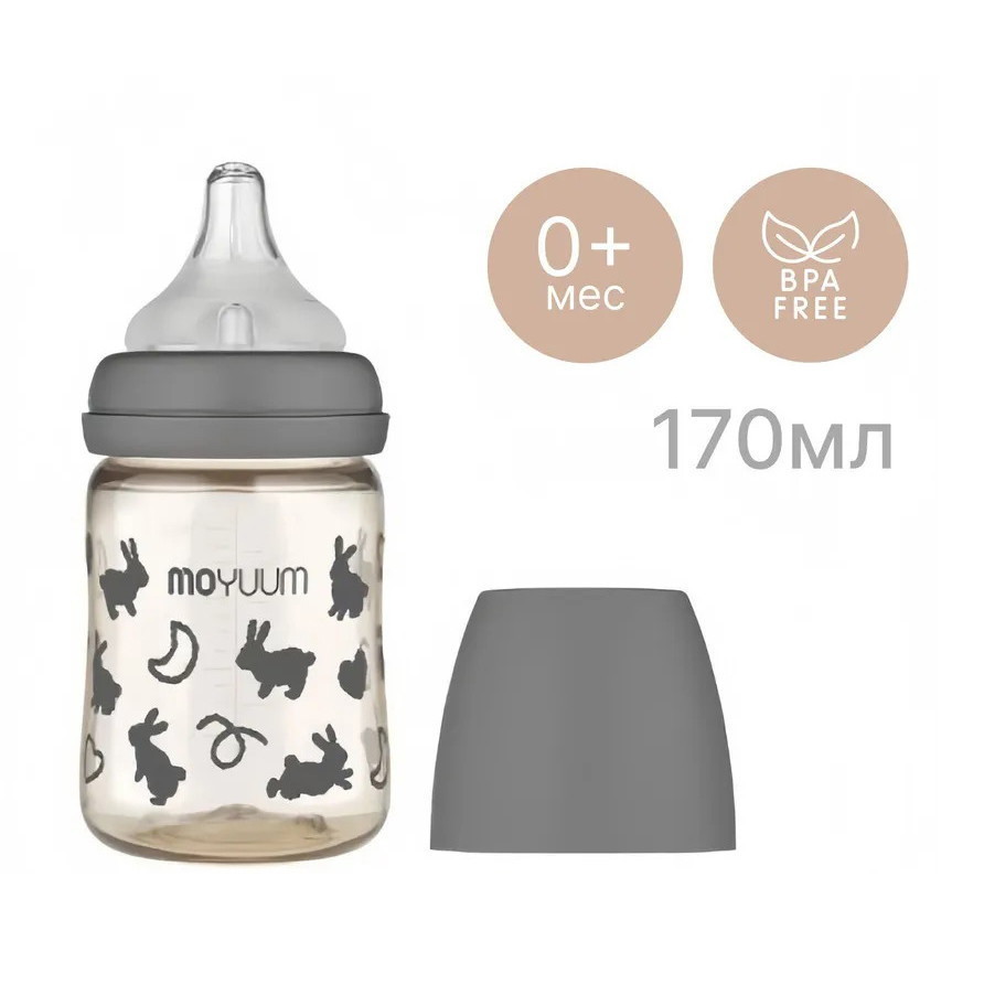 Детская бутылочка Moyuum Зайчик, с соской, 170 мл