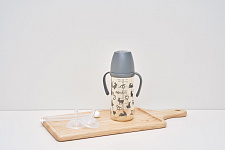 Бутылочка Moyuum разработана специально для младенцев от 0+ месяцев и продумана до мелочей. Используется для питания и в вертикальном, и в горизонтальном положении благодаря своим конструктивным особенностям. Антиколиковый воздушный клапан эффективно предотвращает заглатывание воздуха. Такая противоколиковая система снижает риск газообразования, возникновения колик, а также предупреждает срыгивания. Специальная конструкция дает ребенку возможность сосать в своем темпе и с комфортной скоростью. Анатомическая соска полностью имитирует материнскую грудь и обеспечивает ее правильный захват. Идеальна для докармливания детей, находящихся на грудном вскармливании, поскольку не приводит к отказу от естественного кормления. Подходит для новорожденных с первых дней жизни. Легкую маленькую бутылочку удержат даже 6-месячные малыши. Обязательно пригодится и более старшим деткам в возрасте 9-12 мес и старше года. Широкое горлышко позволяет без труда налить молоко, воду или насыпать смесь. Герметичная крышка легко снимается и надевается одной рукой. Для большего удобства на корпус нанесена яркая шкала, которая не смывается и не теряет четкость со временем. Простая форма с минимумом изгибов и выпуклостей гарантирует беспроблемное мытье и сушку без образования конденсата внутри. Бутылка выполнена из PPSU – высококачественного и долговечного пластика, который не содержит бисфенол А и абсолютно безопасен для детского здоровья. Материал не имеет запаха и не меняет свои свойства даже при высоких температурах до 200°С. Изделие можно кипятить, обрабатывать паром и стерилизовать любым способом.
