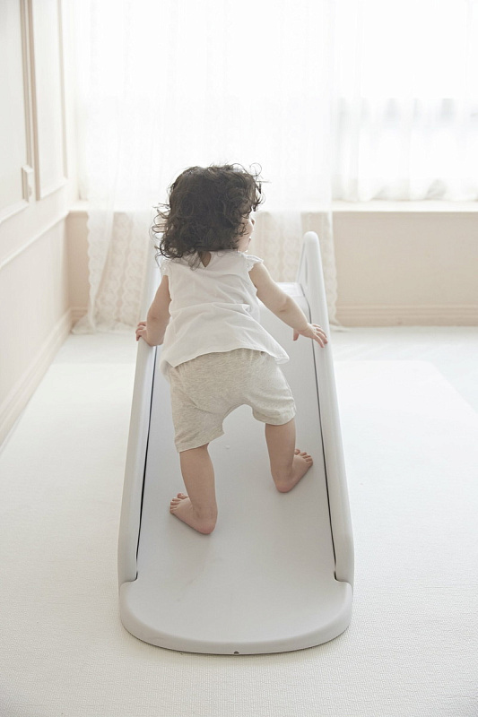 Можно сказать, это универсальный спортивный уголок для развития ловкости, чувства баланса, моторных навыков вашего ребенка. Можно кататься по ней как по обычной горке, а можно практиковать восхождение по полотну наверх — внизу и по бокам полотна располагается безопасные нескользящие зоны.