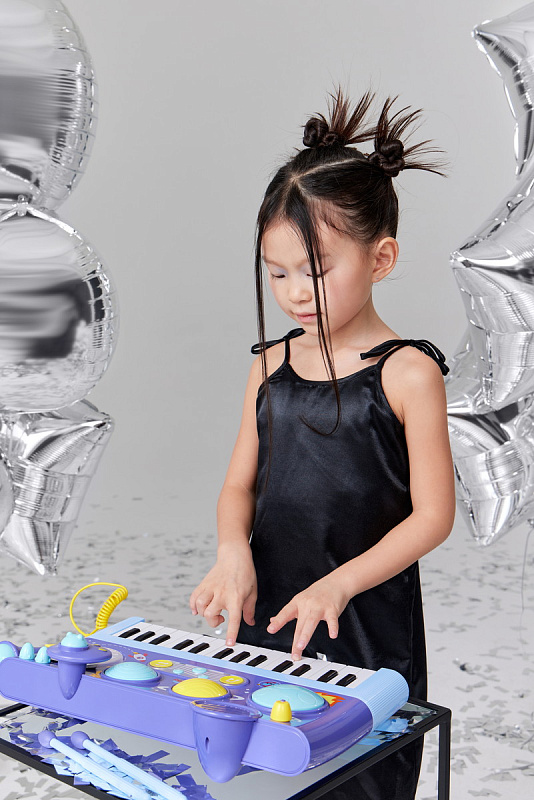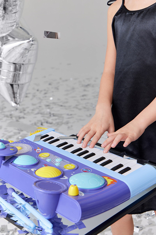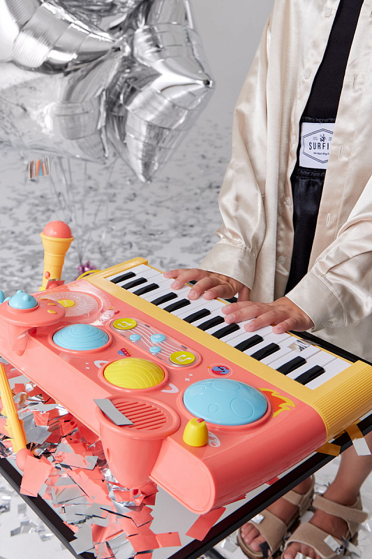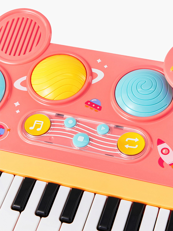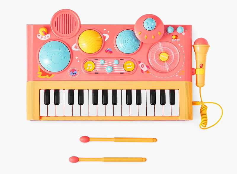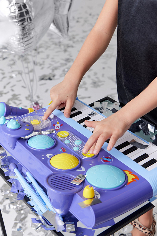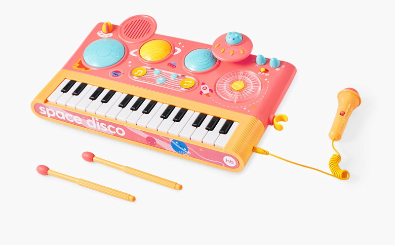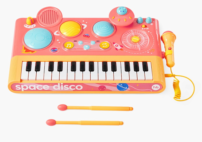 SPACE DISCO привлечёт внимание своим ярким дизайном и надолго увлечёт своими звуковыми и световыми эффектами. Игра на пианино способствует развитию у ребёнка чувства ритма, музыкального восприятия и мелкой моторики. Наличие микрофона даёт возможность разучивать песни и проявлять свои артистические способности.