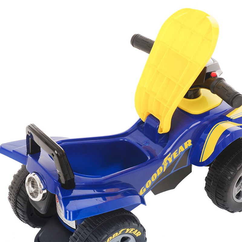Детская каталка-квадроцикл выполнена из прочного и лёгкого пластика, работает от обычных батареек. Движение сопровождается звуковыми эффектами. Каталка поможет в развитии координации движений у ребенка. Малыш сможет получить первые навыки вождения. Имеет спинку, которую ребенок может использовать в качестве ручки для толкания.
