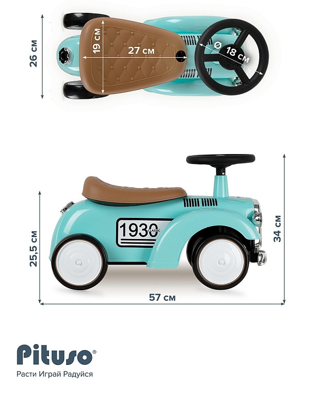 Детская каталка Pituso Ретро Green/Бирюзовый