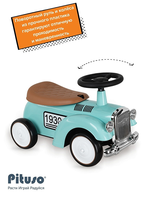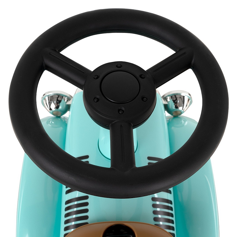 Пищалка на руле добавляет играм веселья, а стильный внешний вид в духе ретро-автомобилей понравится, как мальчикам ,так и девочкам.