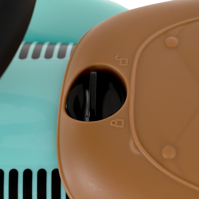 Машина каталка весит всего 2,3 килограмма, и ее легко можно взять с собой на прогулку. Удобное пластиковое сиденье, под сиденьем отсек для хранения. Чтобы открыть отсек для хранения, нужно повернуть ручку блокировки.