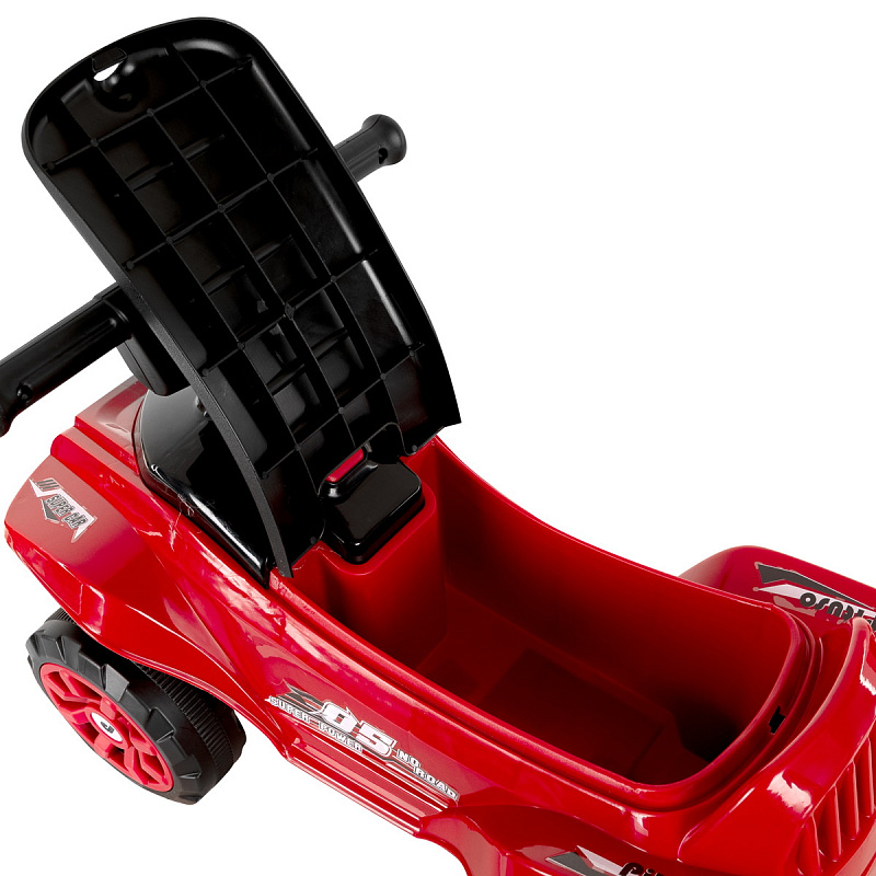 Под сиденьем есть вместительный отсек для хранения любимых игрушек. Специальный стопор сзади защитит каталку от опрокидывания.