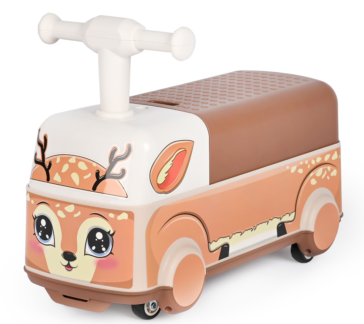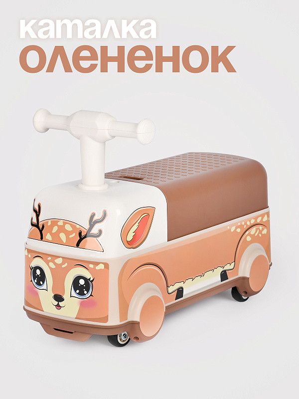 Детская каталка «Олененок» — идеальный выбор для маленьких исследователей! Эта милая и забавная игрушка создана специально для малышей от 1 до 3 лет и обеспечивает им весёлое и безопасное развлечение. Каталка для детей оснащена прочными колёсами (передние - поворотные), которые позволяют ребёнку легко передвигаться по любой поверхности, стоит лишь оттолкнуться ножками. Благодаря удобной ручке, малыш сможет самостоятельно управлять своим маленьким транспортным средством, развивая координацию движений и моторику рук. Дизайн игрушки выполнен в виде милого олененка, с забавными ушками и милейшими глазками. В багажнике каталки ребёнок может хранить свои любимые игрушки, что делает игру ещё более увлекательной и разнообразной. Игрушечная машина изготовлена из качественного прочного пластика, безопасного для здоровья малыша. Не имеет острых углов и деталей. Она легко чистится и моется, что делает её идеальным выбором для использования как дома, так и на улице. Подарите своему малышу радость и веселье с каталкой «Олененок»! Эта замечательная игрушка станет его верным спутником в мире приключений и открытий.