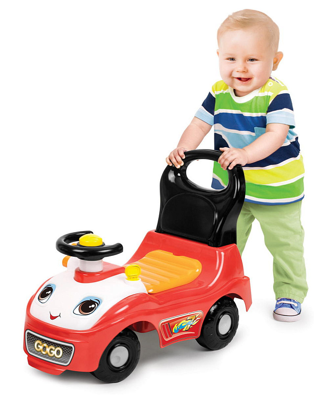 Яркая машинка обязательно понравится Вашему малышу! Она предназначена для мальчишек в возрасте от одного года и до трех лет. Благодаря этой машинке, ребенок научится уверенно стоять на ногах и постепенно будет делать первые шаги, толкая машинку сзади при помощи ручки. Также маленький гонщик с удовольствием будет кататься на машинке, садясь на нее сверху и отталкиваясь ножками от земли. Машинка поможет Вашему крохе развить координацию движений и укрепить опорно-двигательный аппарат.
