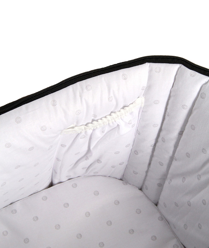 Внутренняя отделка на молнии, с дополнительным карманчиком выполнена из премиального 100% хлопка. При необходимости ее можно снять и постирать. Люлька имеет многоступенчатую внешнюю регулировку вентиляции и подъёма изголовья, встроенные в дно корпуса.