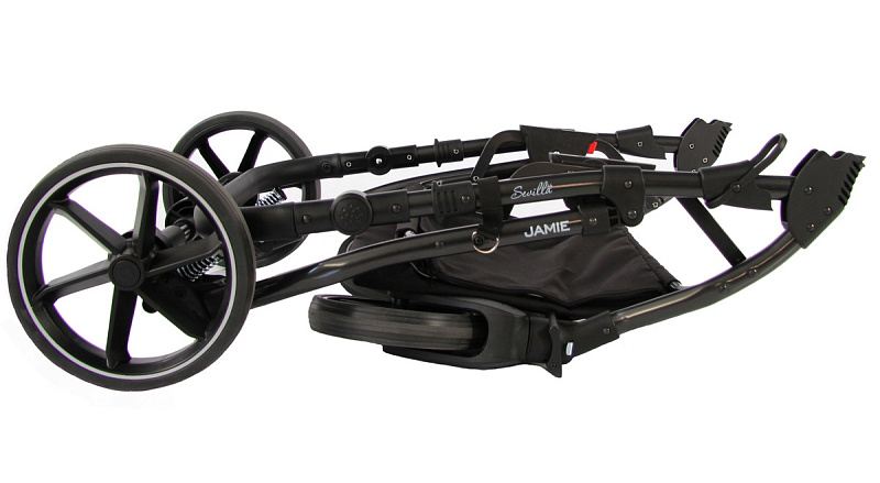 При создании коляски JAMIE конструкторы, как и в предыдущих моделях, особое внимание уделили прогулочному блоку. Он просторный, удобный (длина-93 см, ширина-35 см) и рассчитан для детей весом до 22 кг. Вам не придется покупать дополнительно прогулочную коляску. Ведь люлька нужна первые 6 месяцев, а все остальное время вы будете пользоваться прогулочным блоком. Реверсивный прогулочный блок с жёсткой спинкой и большим капором. Механическая регулировка уровня спинки позволяет бесшумно регулировать наклон от сидячего до горизонтального положения. Подставку для ног так же можно установить в одном из 3-х положений. Пятиточечные ремни с мягкими накладками и защитный бампер обеспечат безопасность и комфорт ребёнку во время прогулок. Прогулочный блок оснащён съёмным капором, с открывающимся вентиляционным окошком со встроенной москитной сеткой, обеспечивающей дополнительную вентиляцию в жаркие дни. Утеплённая накидка на ножки с высоким бортиком защитит от непогоды. Бампер из эко кожи снимается одним нажатием.