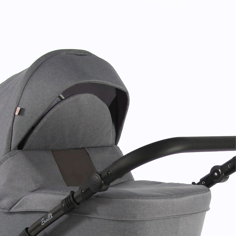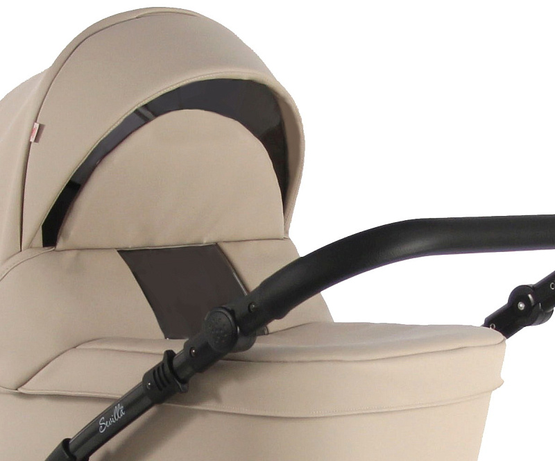 Комфорт и безопасность новорожденному обеспечит литая пластиковая люлька коляски в сочетании с внешней обшивкой из высококачественного материала (водоотталкивающей ткани, либо эко кожи). Внешне коляска выглядит компактно, но внутренний размер люльки (спальное место-70*32*23) позволяет комфортно разместиться малышу любой комплекции. Капор люльки оснащен открывающимся при помощи замка вентиляционным окошком со встроенной москитной сеткой, обеспечивающий дополнительную вентиляцию в жаркие дни. Утепленная накидка, которая крепится на люльку с помощью надёжных магнитов, подходит для зимних прогулок и для межсезонья. В накидке имеется откидной ветровик защищающий малыша от ветра, дождя и снега. Для зрительного контакта с малышом производитель предусмотрел смотровое окошко в бортике накидки.