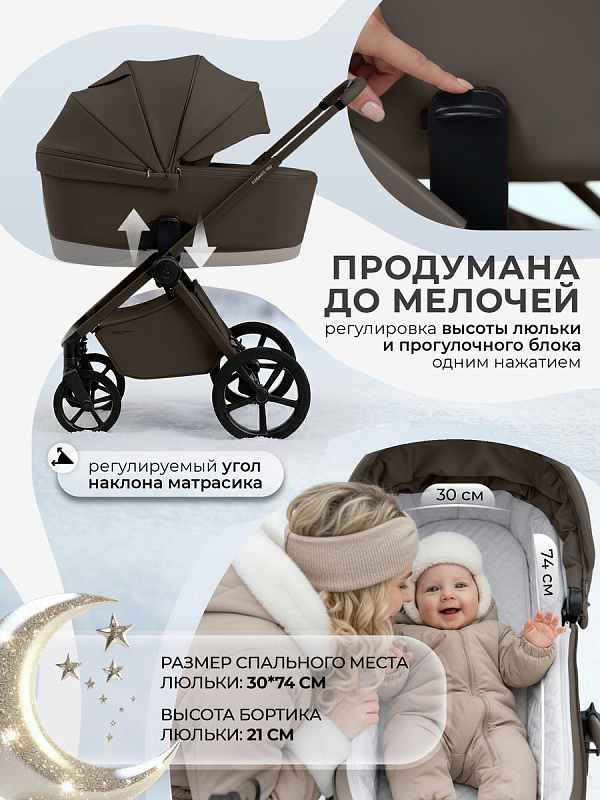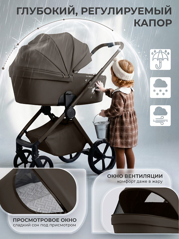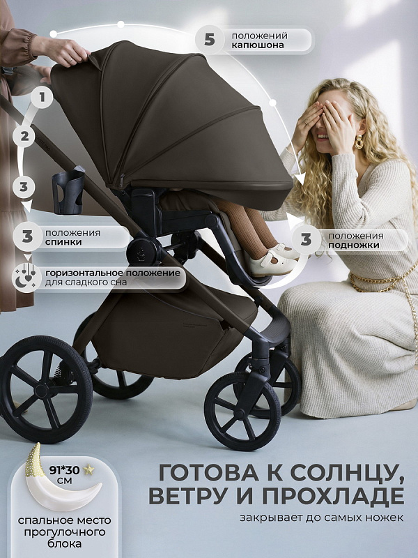 В ней объединены передовые технологии и эргономика, чтобы вы могли сосредоточиться на главном - на счастливых моментах с вашим ребёнком. С ней вы получите не просто средство передвижения, а настоящего помощника, готового обеспечить комфорт малыша в любую погоду и на любом маршруте.