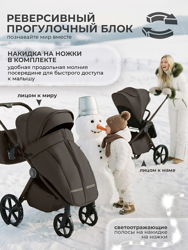 - Прогулочный блок реверсивный, что позволяет размещать ребенка, как лицом к родителю, так и лицом к окружающему миру