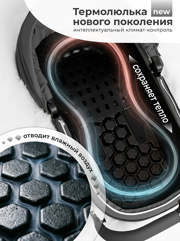 - Интеллектуальный климат‑контроль в люльке. Большая просторная термолюлька люлька (86х46х66 см) обеспечивает оптимальную температуру внутри, она обладает отличной теплоизоляцией, малышу комфортно в любых погодных условиях и служит барьером от внешнего мира: