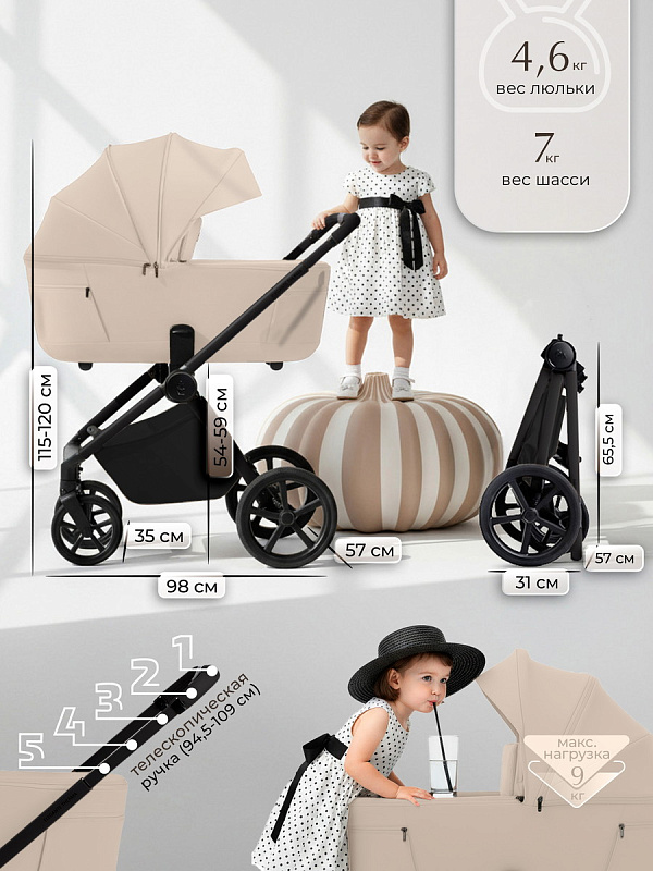 Регулируемая телескопическая ручка позволяет настроить высоту под любые ростовые особенности родителей, обеспечивая интуитивное управление без лишних усилий. Колеса с водоотводящими протекторами обеспечивают надежное сцепление и уверенную проходимость по улицам, защищая от проскальзывания и предоставляя дополнительную безопасность.