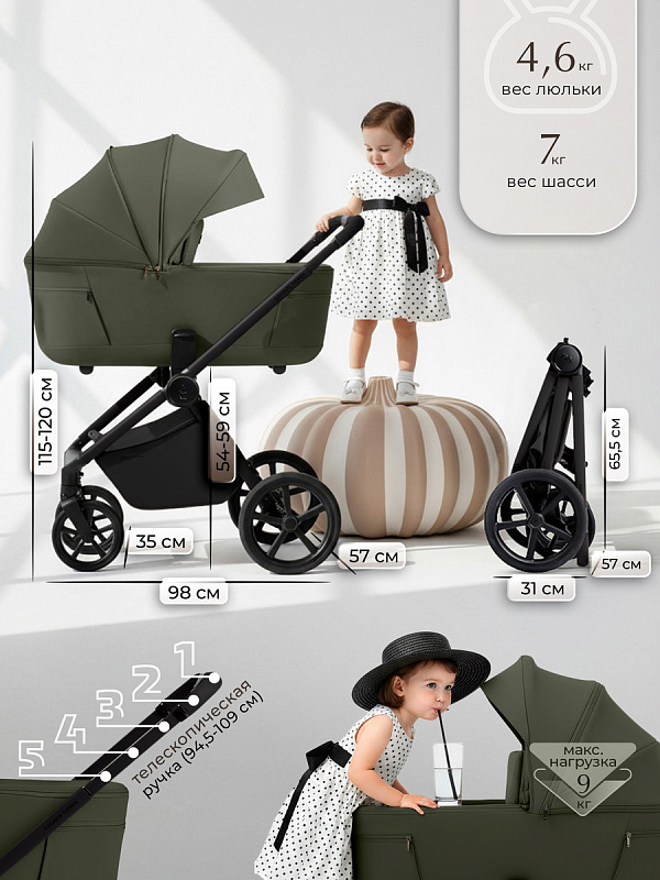 Регулируемая телескопическая ручка позволяет настроить высоту под любые ростовые особенности родителей, обеспечивая интуитивное управление без лишних усилий. Колеса с водоотводящими протекторами обеспечивают надежное сцепление и уверенную проходимость по улицам, защищая от проскальзывания и предоставляя дополнительную безопасность.