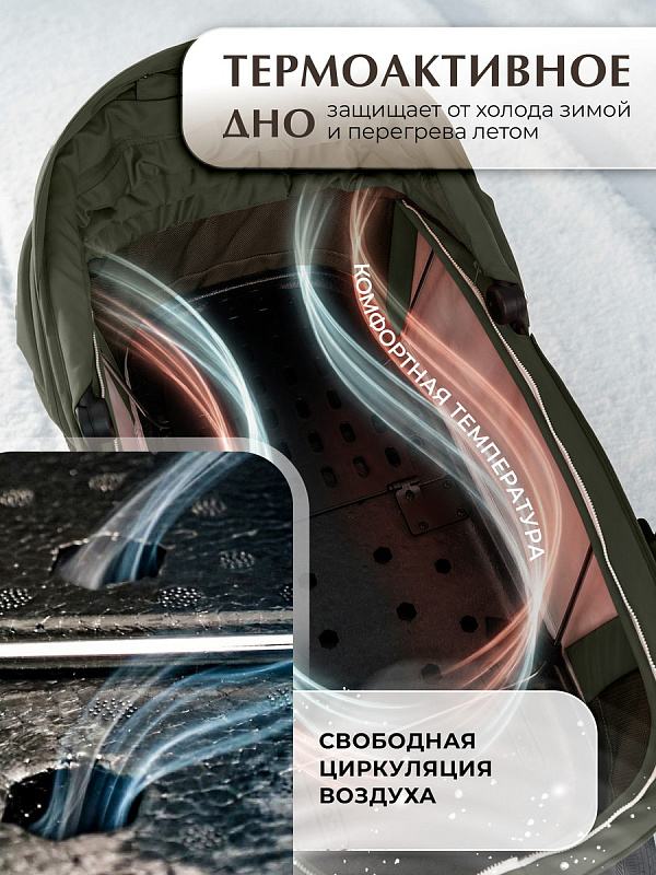 Термоактивное дно люльки поддерживает оптимальную температуру и защищает от переохлаждения зимой и перегрева летом.