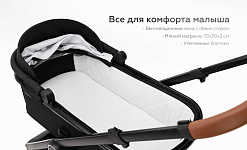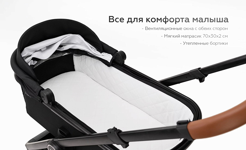 Люлька для новорождённого — это идеальное дополнение к коляске. Она оснащена удобным матрасиком, мягкой съёмной обивкой из дышащей хлопчатобумажной ткани, которую можно стирать. Защитный экран со смотровым окном обеспечивает защиту от ветра и осадков, а три вентиляционных окошка в стенках люльки создают комфорт в жаркие летние дни. Ручка для переноски из экокожи делает процесс переноски люльки максимально удобным.