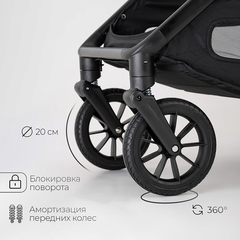Амортизация колёс гарантирует плавный ход и мягкость езды даже на неровных поверхностях.