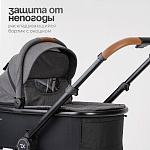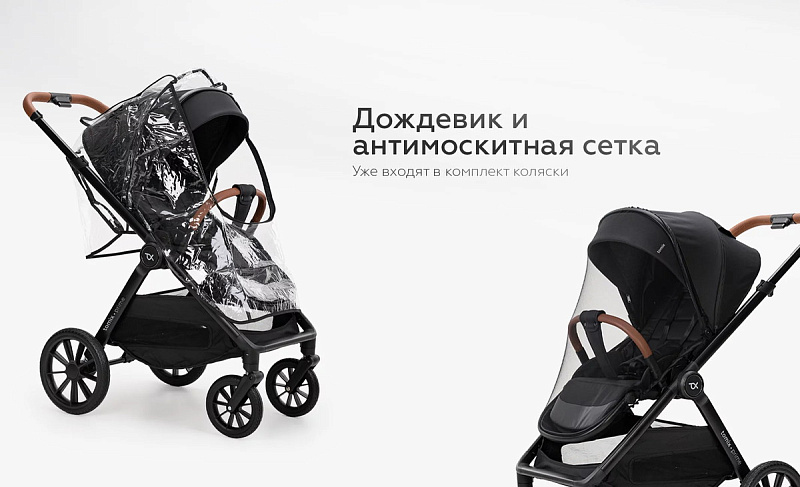 Пятиточечные ремни безопасности обеспечивают надёжное крепление малыша внутри коляски, а дождевик защищает от непогоды. В комплекте идет москитная сетка.