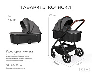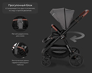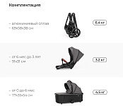 Комплект коляски включает люльку для новорожденного и прогулочный блок для детей от 6 мес до 3 лет.