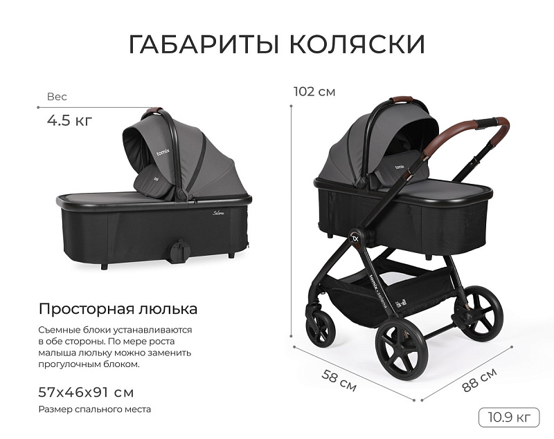 Новинка в линейке колясок Tomix - модульная коляска для новорожденных 2в1 Selena! Стильная, лаконичная и функциональная модель, отвечающая требованиям современных родителей.