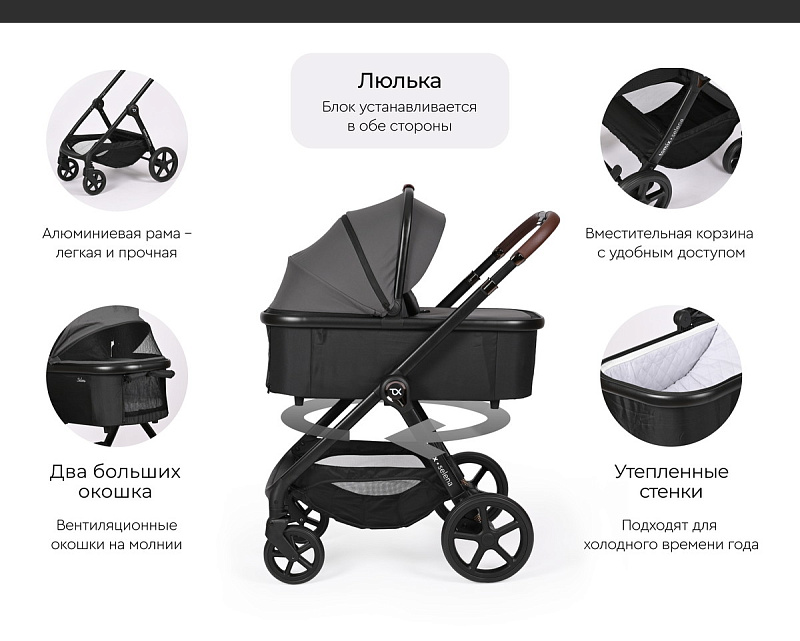 - возможность установки прогулочного сиденья/люльки лицом к маме или по ходу движения;
