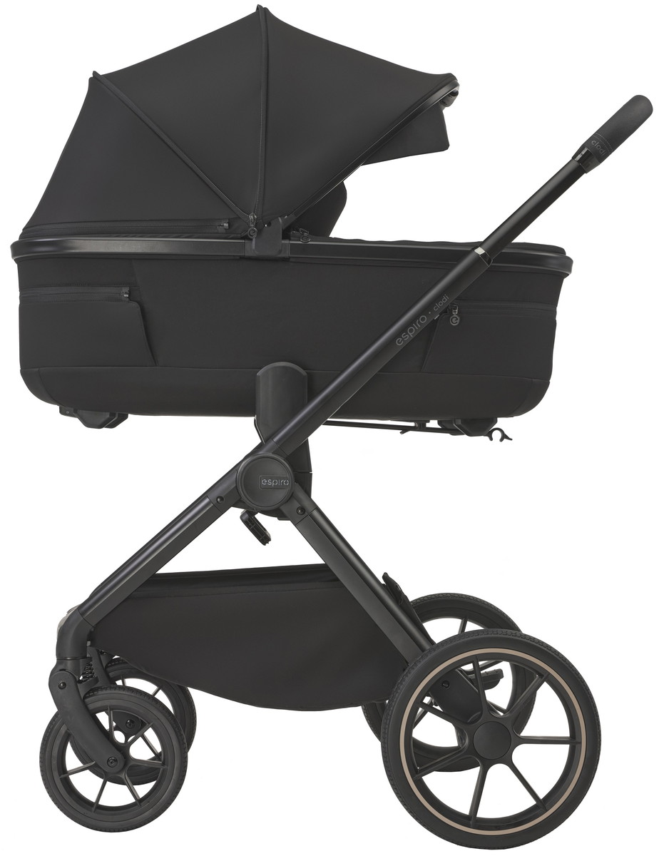 Espiro Clodi — современная коляска для комфортных прогулок по городу. Лёгкая рама, большие гелевые колёса, продуманная амортизация и ультралёгкая люлька делают её идеальным выбором для активных родителей.
